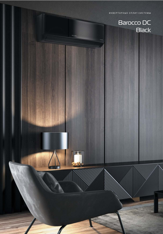 Сплит‑система Royal Thermo Barocco DC RTBI‑09HN8/black — инверторная модель премиум‑класса для помещений 20–25 м². Чёрный корпус Black Brilliant не пачкается и подчёркивает стиль интерьера. Класс энергоэффективности SEER A++ (фреон R32) экономит до 40 % электроэнергии. Работает на обогрев до −20 °C — надёжна в холодное время года.