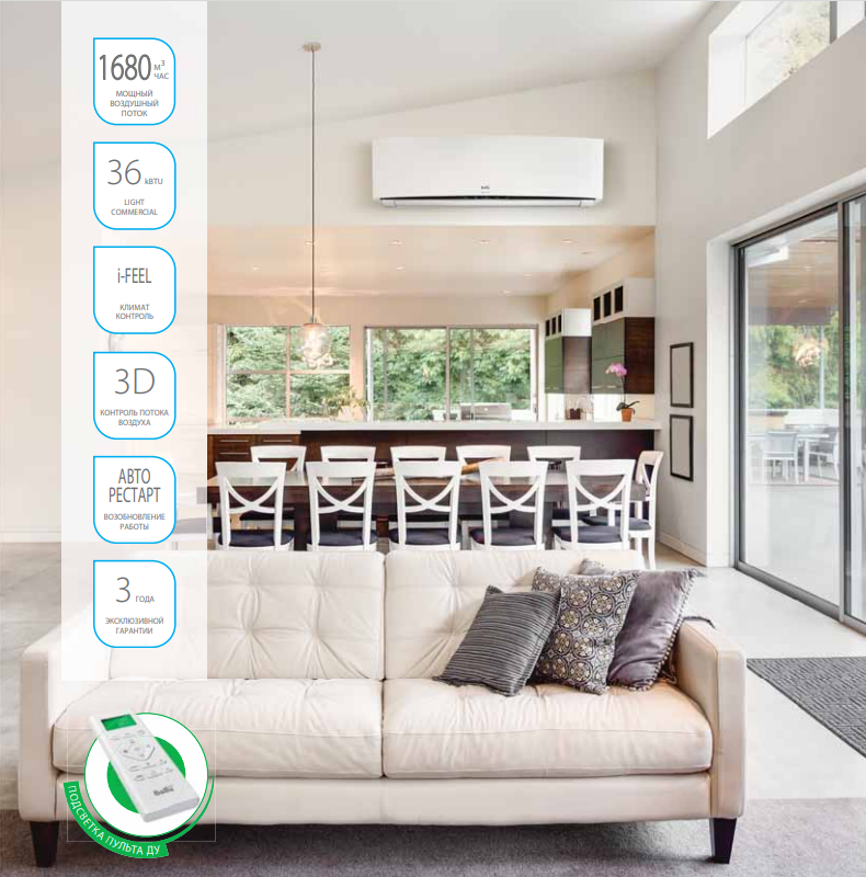 • Особенности Авторестарт при отключении питания / Подсветка пульта / Режим SLEEP / Режим автоочистки / Система самодиагностики неисправности