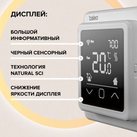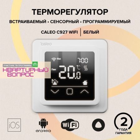 CALEO C927 WIFI — встраиваемый цифровой программируемый регулятор температуры с возможностью удаленного управления по Wi-Fi. Предназначен для управления электрическими и водяными системами обогрева: всеми видами теплых полов, различными электронагревателями и конвекторами, шаровыми кранами с электродвигателем, электромеханическими, электромагнитными и тепловыми клапанами.