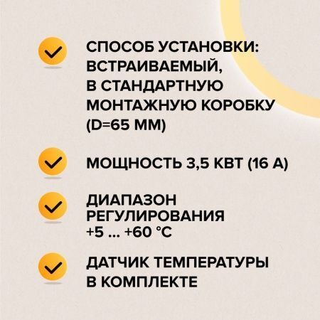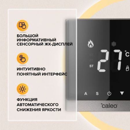 Терморегулятор прост в управлении и удобен в эксплуатации благодаря интуитивно понятному интерфейсу, большому LCD дисплею и сенсорным кнопкам. Имеет лаконичный привлекательный дизайн, а также ряд полезных функций:
